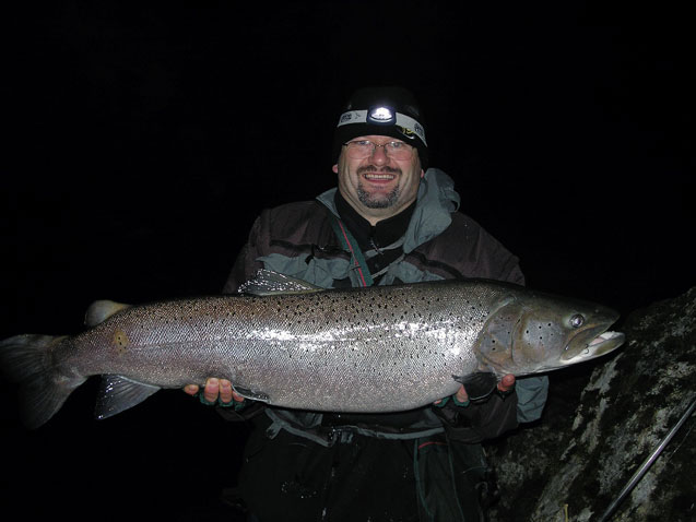 Le huchon fraie de mars à avril, quand la température de l’eau atteint environ 10 °C. Pour trouver de belles gravières où la femelle déposera ses oeufs, les huchons remontent en général la rivière vers l’amont. Hucho hucho est un grand prédateur qui, dès son plus jeune âge, se nourrit de poissons. Adulte, lorsqu’il mesure plus d’un mètre, il n’hésite pas à se saisir de proies dépassant le kilo, voire de petits rongeurs ou d’oiseaux aquatiques. Le hotu, qui vit en bancs importants, est l’un de ses repas préférés, mais l’ombre commun, la truite fario ou arc-en-ciel, qui vivent souvent dans le même secteur, se retrouvent également régulièrement au menu du grand salmonidé ! Le record moderne slovène, qui date du 8 février 2005, atteint 135 cm pour 26,9 kg. Plusieurs spécialistes slovènes, dont mes amis Jure Visnar et Aljosa Savic, pensent que ce record devrait être battu très prochainement dans la Grande Sava, car des poissons dépassant les 30 kg y ont été observés ! Ces dernières années, Aljosa a luimême capturé dans la Sava, sur le secteur Straza-Sava, deux huchons dépassant 20 kg ! La saison dernière, il a raté, par décrochage, un poisson encore plus gros que ses deux précédents records ! Lorsqu’il est en pleine période alimentaire, le huchon n’est pas vraiment difficile à leurrer. En revanche, rassasié, il peut rester plusieurs jours dans sa planque, sans aucune activité ! D’où la nécessité d’être présent au lever et au coucher du soleil, devant le bon poste, au moment où le grand poisson se met généralement en chasse.