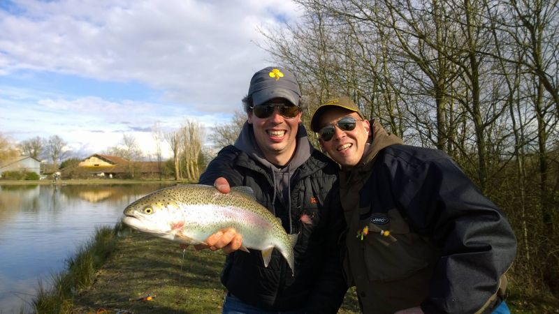 Ludovic en lui indiquant les réactions les truites devant sa nymphe ! Un