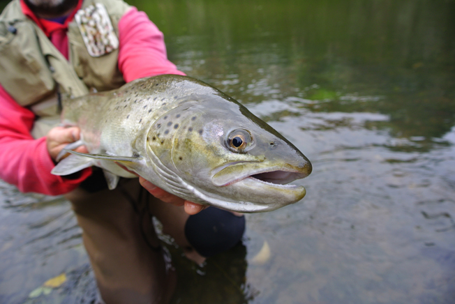 La Fédération du Calvados pour la pêche et la protection des milieux aquatiques publie chaque mois le nombre de truites de mer et de saumons qui ont été comptées lors de leur passage dans la passe à poissons du Breuil-en-Auge (Calvados). Au 23 août, 5516 truites de mer étaient passées sur la “zone amont” de la Touques, mais également 14 saumons. Ces chiffres ne prennent pas en compte les poissons qui restent sur la zone aval ou qui s’engagent dans les affluents en aval du Breuil-en-Auge. Le gros des remontées est passé, ce qui laisse augurer une fin de saison avec des poissons bien répartis dans toutes les fosses. Un bon cru. Rappelons que la pêche de la truite de mer nécessite de prendre le timbre “migrateur” ainsi qu’une car te de pêche compatible avec la pêche sur la Touques (carte locale ou réciprocité Ehgo).