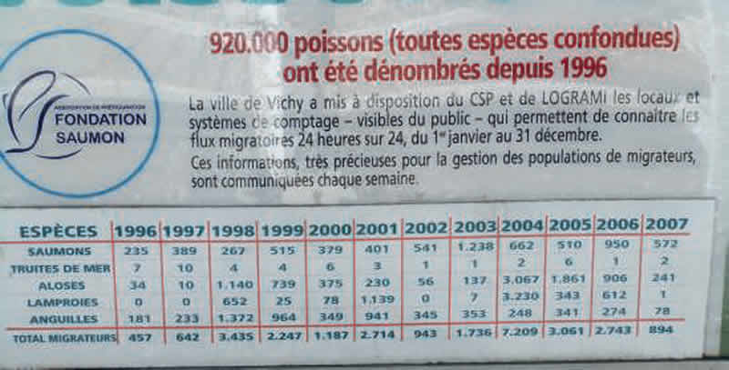 En 2009, nous avions publié un article signé du célèbre pêcheur de saumons auvergnat Emmanuel Gladel intitulé Saumons de l’Allier, saumons de papier. Cela n’avait pas plu à la direction du Conservatoire national du saumon sauvage (ex pisciculture de Chanteuges) qui croyait dur comme fer au retour du saumon sauvage. Sept ans plus tard, la situation du saumon sur l’axe Loire-Allier n’est toujours pas favorable au retour du poisson roi. Les remontées sont bon an mal an de 500 à 900 saumons pour 1 à 2 millions d’oeufs, d’alevins ou de smolts issus de l’élevage introduits dans la rivière Allier et ses affluents. L’efficacité est donc d’environ 0,0005 à 0,0008 % et seul un résidu de souche sauvage persisterait. Les oeufs sont issus de la reproduction en pisciculture loin du milieu naturel. Il faut aussi savoir que sur l’axe Loire/allier, environ 50 % des smolts de saumons et plus encore en ce qui concerne les anguilles finissent en rondelles dans les turbines ! Sur le site internet du Conservatoire (www.saumon-sauvage.org), on peut voir des photos de saumons adultes qui portent des graves blessures dues aux seuils et autres barrages. Et pour les survivants, les smolts dévalants doivent réussir à passer le bouchon vaseux de l’estuaire de la Loire et son million de tonnes de sédiments sur quelques kilomètres (variable selon les marées, les crues du fleuve, les grandes tempêtes, etc). Cette zone très pauvre en oxygène a toujours existé, mais la domestication du fleuve l’a très certainement modifiée (eau plus chaude). Parmi les bonnes nouvelles, l’abaissement du barrage de Poutès-Monistrol (2018) devrait permettre aux saumons de l’Allier d’atteindre de nouveau des zones de frayères qui leur étaient interdites depuis le début des années 1940, période de construction du barrage. Là encore, il aura fallu trente ans de combat ( WWF France, SOS Loire-Vivante et d’autres ONG) pour qu’enfin une décision soit prise. Et même si on aurait tous souhaité l’arasement total, la “féé électricité” a fini par céder en partie. Là encore, le blocage dépassait de très loin la simple réalité économique, car le bras de fer était politique.