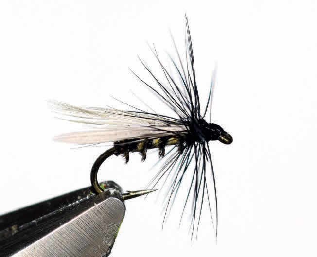 La paternité de ce diptère universel revient à Raymond Rocher et sans doute faut-il voir dans ce nom l’évocation d’une fameuse rivière cévenole, l’Altier. Mais partout, l’altière fait merveille lorsque fourmis, chironomes, simulis et d’autres insectes terrestres de tailles plus importantes comme les bibios mettent les truites à table. Car la formule de montage de l’altière ne demande qu’à être déclinée à l’identique de la taille 22 à 12 ! Pour le pêcheur en rivière, c’est surtout ses tailles d’origine de 18 et 20 qu’elle trouve son intérêt pour l’imitation des fourmis noires et éventuellement de petits chironomes. Dans le cas des retombées de fourmis, les truites et les ombres se focalisent sur ces insectes qui ont apparemment bon goût ! En lac, les probabilités de croiser des espèces terrestres, ou des chironomes, sont beaucoup plus fréquentes et il convient donc de monter l’altière dans toutes les tailles, car c’est une fantastique mouche pour la pêche en réservoir. On ne prend aucun risque avec ce genre de mouche en lac. Et ceci reste valable du plus petit “baquet” de 500 m2 au plus grand lough irlandais ! C’est la mouche passe-partout par excellence, que sa naturelle simplicité rend vraiment crédible. L’absence de matériaux synthétiques évite le côté un peu trop tapageur dont souffre bien des créations modernes. Seul le herl peut apporter un peu d’excentrisme avec le coté irisé des herls de paon. Dans sa version d’origine, l’altière était montée avec un herl de condor, oiseau dont la commercialisation des plumes a été interdite depuis. Plusieurs substituts sont possibles comme les herls et les biots d’oie teintés, de dinde ou tout simplement de corneille. Mais attention, le rendu diffère beaucoup selon les types de herls.