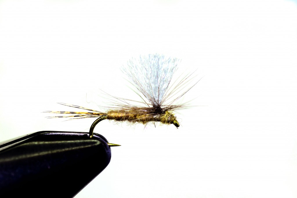 Cette imitation en taille 16 est un passe partout idéal en début de saison. On peut faire varier la couleur du corps, du jaune pâle au vert olive plus ou moins foncé.