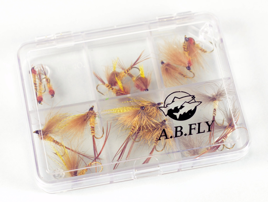 Des sélections de boîtes à mouches choisies par la rédaction et montées par Alain Barthélémy (société AB Fly) pour être certain de partir à la pêche avec des modèles qui ont fait leurs preuves. Alain Barthélémy est monteur de mouches professionnel depuis vingt ans et monte lui même l’intégralité des modèles de la collection AB Fly.
