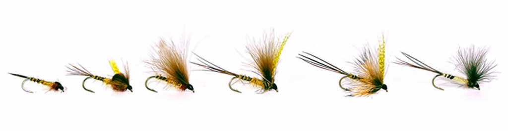 Le cycle de la mouche de mai : six modèles de la larve au spent pour coller à l’éclosion du moment. Mouches montées par Alain Barthélémy (AB Fly) proposées dans une boîte de 18 mouches (3 par stade).