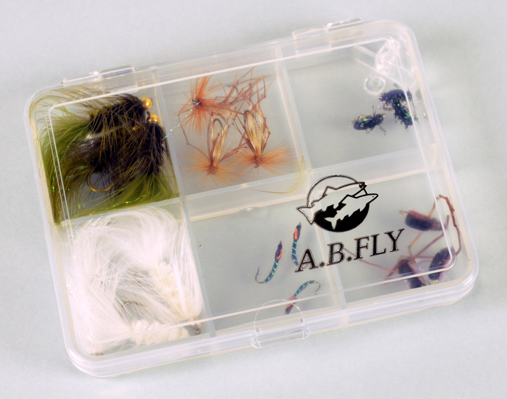 Des sélections de boîtes à mouches choisies par la rédaction et montées par Alain Barthélémy (société AB Fly) pour être certain de partir à la pêche avec des modèles qui ont fait leurs preuves. Alain Barthélémy est monteur de mouches professionnel depuis vingt ans et monte lui même l’intégralité des modèles de la collection AB Fly.