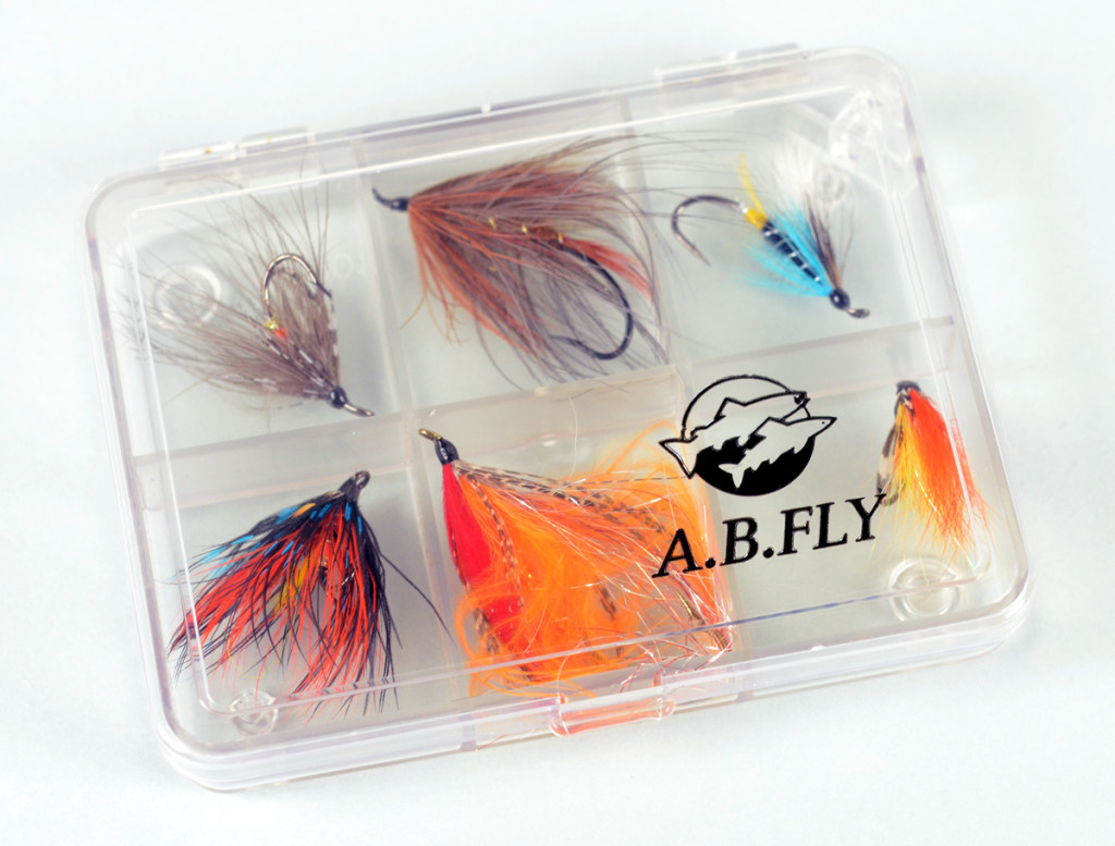 Assortiment de 6 mouches à saumons (mouches Rainy’s, distribution AB Fly) pour découvrir cette pêche. Sélection adaptée aux eaux françaises (Bretagne), à l’Irlande, l’Ecosse ou l’Islande.