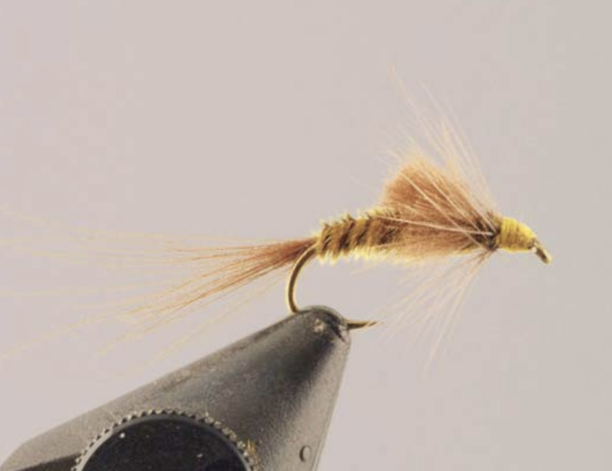 On peut aussi imiter l’exuvie d’un insecte émergent avec autre chose que des matériaux synthétiques, les anciens le faisaient déjà avec des produits naturels. C’est le cas de cette émergente qui utilise la fibre de cul de canard. L’exuvie ainsi obtenue est plus souple et plus naturelle sur l’eau.