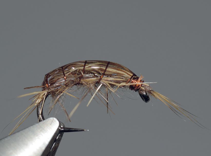 Le ragondin se suffit à lui-même pour l’imitation de la crevette d’eau douce. Les pattes sont un mélange de bourre et de petits poils (vers la tête de l’animal) alors que la carapace est assurée par les longs poils du dos.