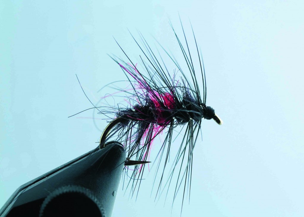 Une imitation tout à fait suggestive des bibios. Elle est à placer en top dropper ou en middle dropper dans un train de trois mouches. Une imitation simple à confectionner qui saura séduire truites et saumons lors des journées où le vent est de la partie en début de saison. Il est possible de substituer le SLF par du dubbing de phoque.