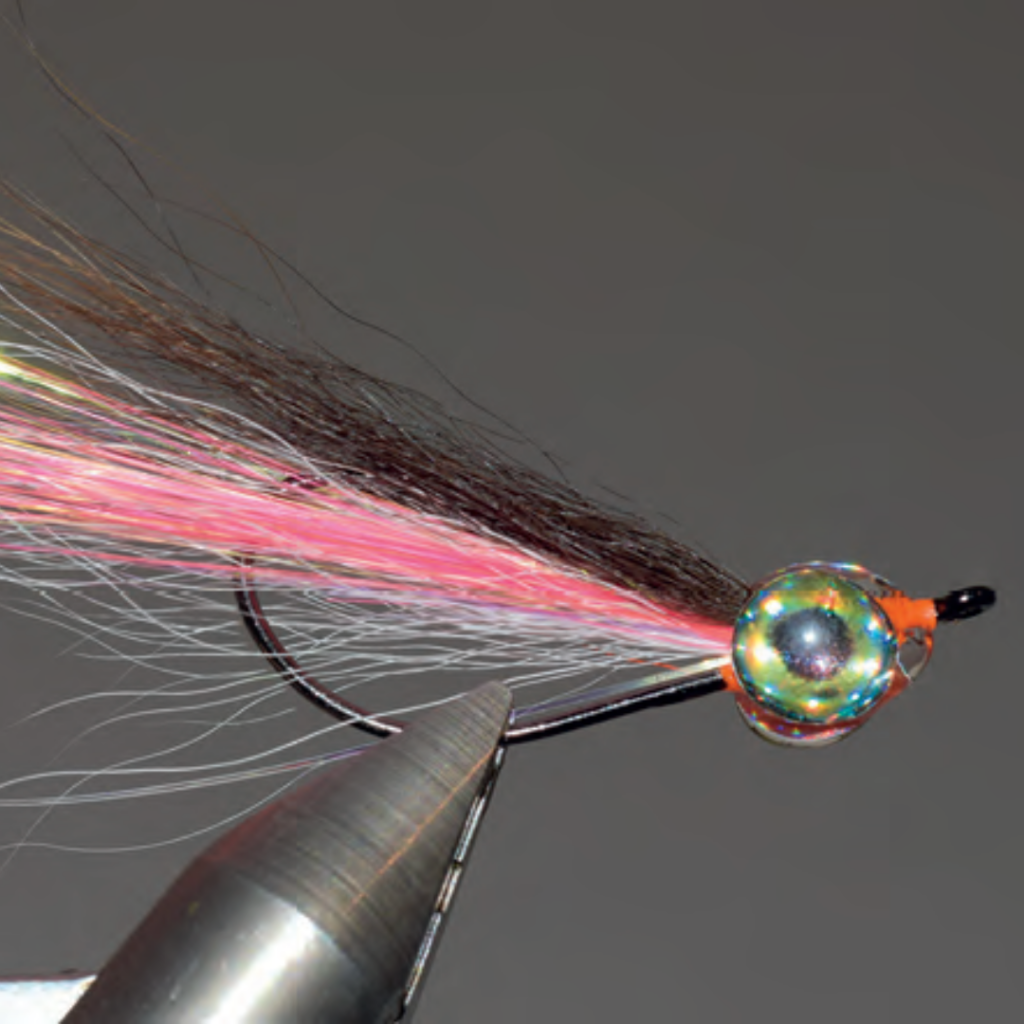 Un petit streamer de type “clouser” d’une dizaine de centimètres à essayer lorsque les brochets se nourrissent de petits gardons ou de petites perches, ce qui est très fréquent, y compris en grands lacs alpins. L’emploi de poils raides et d’un hameçon monté à l’envers protège la pointe des algues et des herbiers. Attention à placer la tête un peu bas pour bien dégager la courbure.